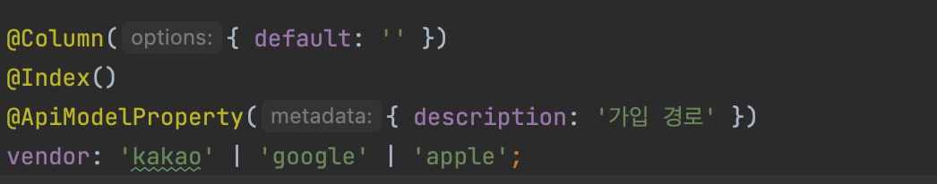 vendor 는 이상한 값이 아닌 정해진 값들 중 하나가 될 것이기에 아래처럼 'kakao' | 'google' | 'apple' 으로 설정함.