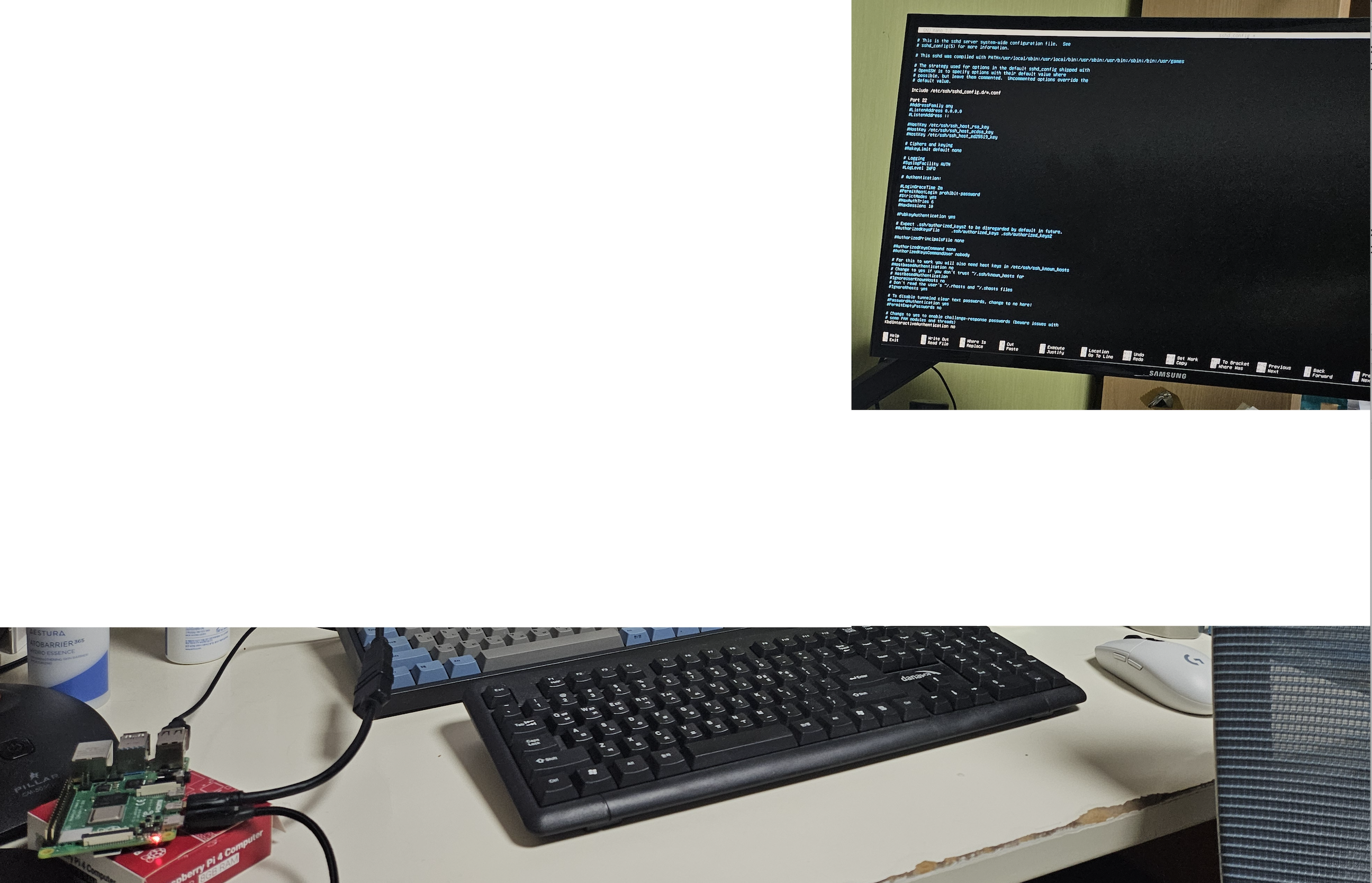 왼쪽처럼 초기엔 라즈베리파이와 직접 모니터, 키보드를 연결해서 세팅을 하고