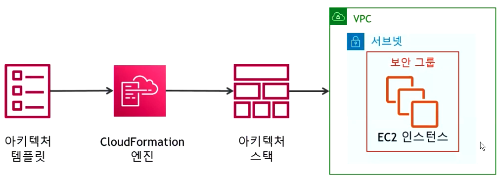 => CloudFormation 엔진에 보내면 아키텍처 스택(인프라의 논리적인 모습)을 만들어줌